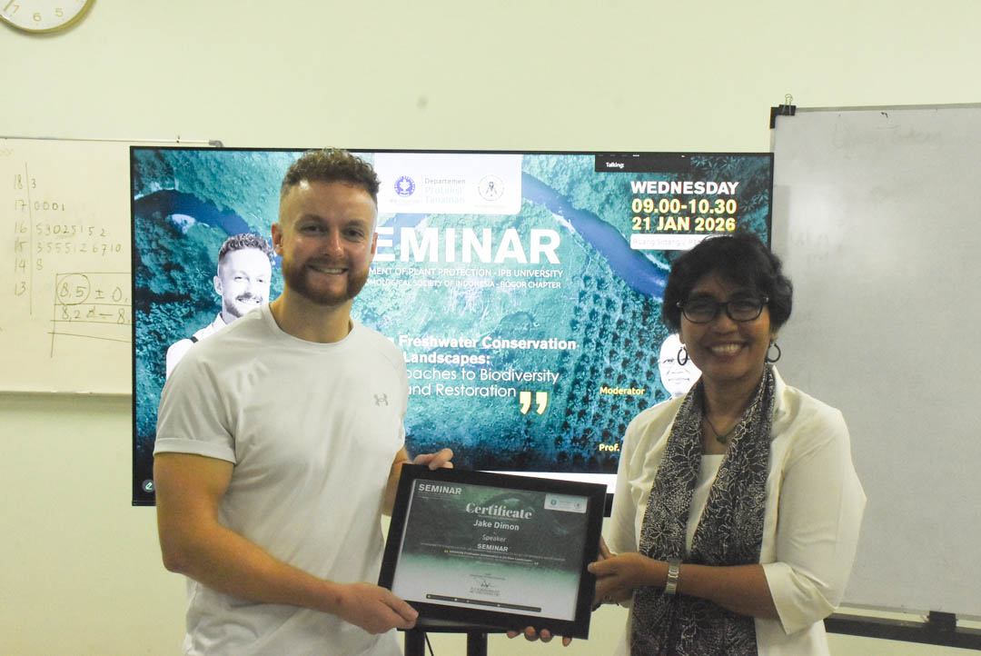 BOGOR – Departemen Proteksi Tanaman IPB University, bekerja sama dengan Perhimpunan Entomologi Indonesia (PEI) Cabang Bogor, sukses menyelenggarakan seminar bertajuk “Advancing Freshwater Conservation in Oil Palm Landscapes: Novel Approaches to Biodiversity Monitoring and Restoration”. Acara ini menyoroti urgensi pemulihan ekosistem air tawar di tengah ekspansi lahan industri.